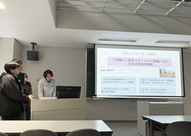 今回の発表は、松本大学の国際化を学生自身の視点から考える貴重な機会となりました。小野ゼミでは今後も、大学や地域社会の課題を題材に、実践的かつ国際的な視野を養う学びを展開していきます。