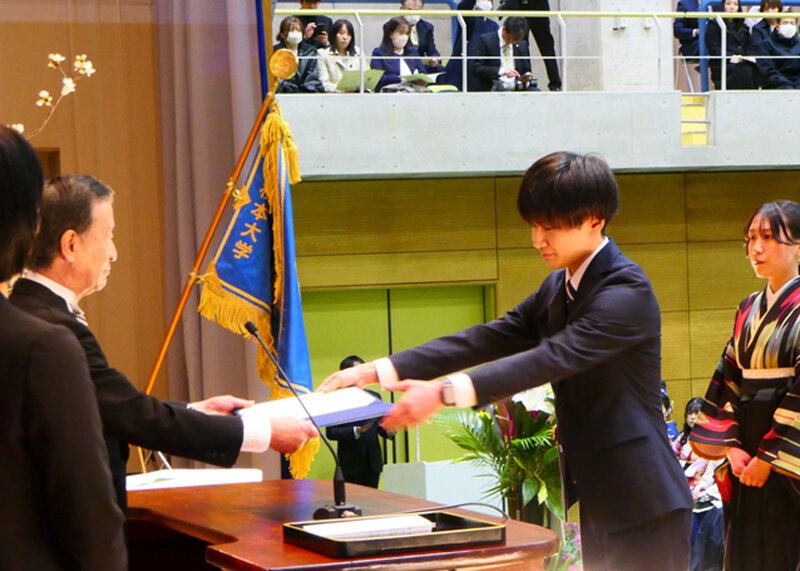 最後に、皆さんの大学生活での成長には多くの支えがあったと思います。時に厳しくもいつも温かくご指導をいただいた先生や先輩はもとより、互いに切磋琢磨し、また励まし合った同級生や友人達などが側にいてくれたはずです。社会に巣立つ皆さんも、また大学院へ進学する皆さんも、こうした感謝の気持ちを忘れることなく、その上で松本大学時代に得た多くの有形、無形の財産を大切にして、今後さらに飛躍されることを願っています。
