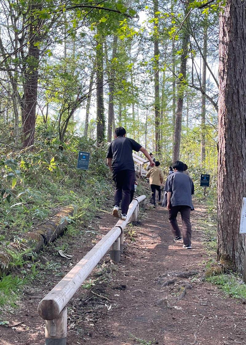 また、野外活動施設「nagano forest village」にも立ち寄りました。地域の自然を活かした施設等のコミュニティでの役割について学び、それらを活用した自然体験活動の幅を広げていく展望を持つことができたのではないかと思います。