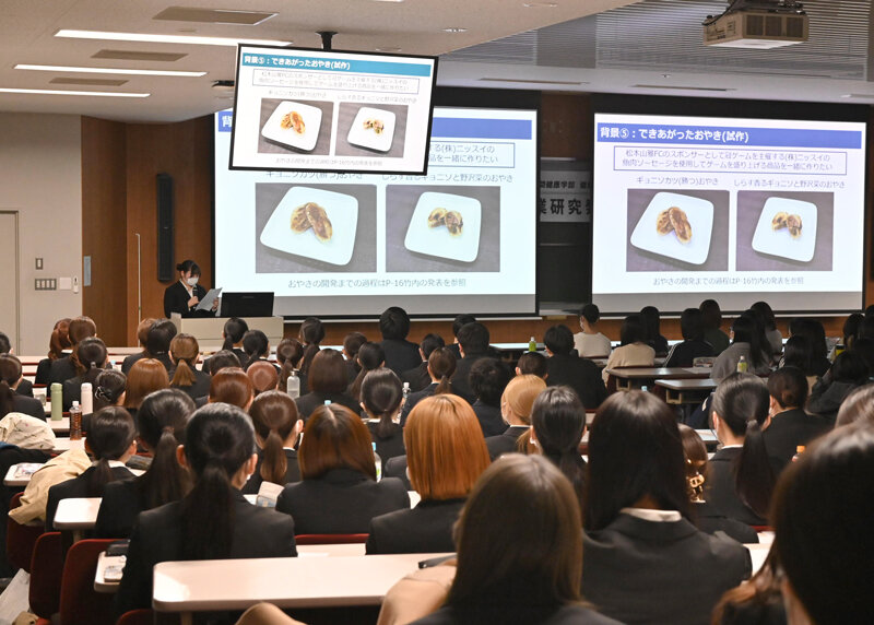 口頭発表は、栄養素による遺伝子発現などの基礎研究分野から栄養調査、食品開発、メニュー開発、食物アレルギーや食品ロスといった食に関する実践的な研究分野に加え、文化やメンタルヘルスに関する研究まで本当に多岐にわたりましたが、いずれの発表者も各々の研究を自分の言葉で堂々と発表しており、彼らの4年間の成長が感じられました。また発表後の質疑応答では、主に3年生を中心に積極的に質問する姿が見受けられたことも印象的でした。