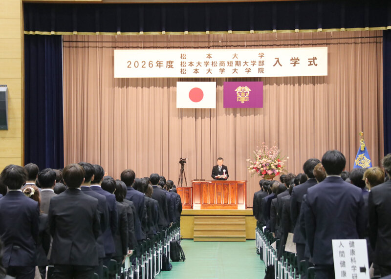 2026年度入学式を4月4日に挙行しました。本年度は、松本大学・松本大学松商短期大学部・松本大学大学院で計 657名の入学生を迎え、新たな学生生活の一歩を踏み出しました。