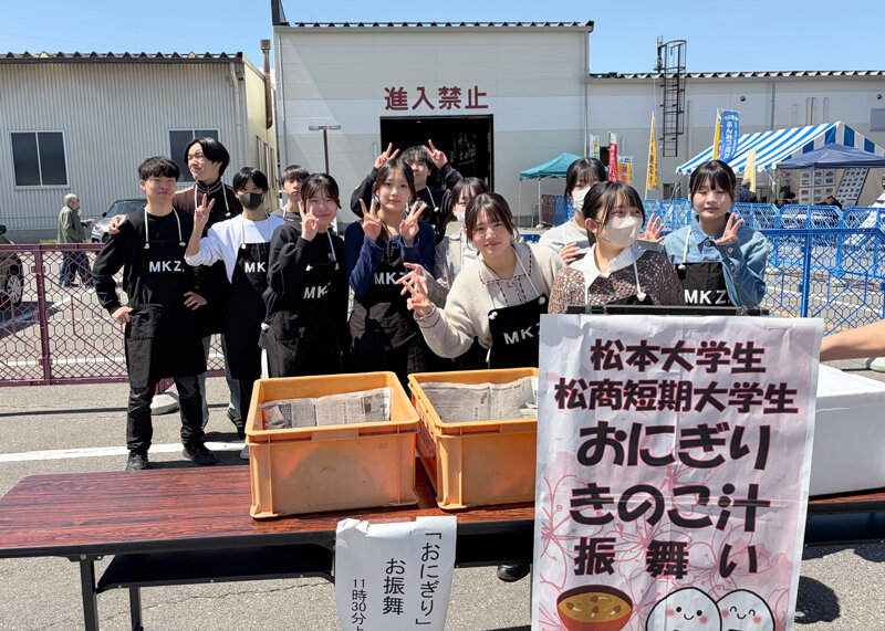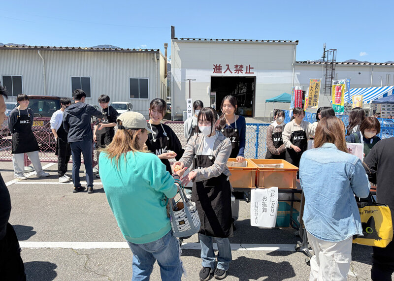 4月11日(土)にJAあづみが開催した春のイベントに、今年も参加させていただきました。金子ゼミ2年生全員で、見た目にも春らしい鮭と野沢菜のおにぎり250個を1時間ほどで作り終え、お客様お一人おひとりに振る舞うことができました。みんなでやりがいのある活動に取組むことができ、よい経験になりました。就活中の学生たちの、よい刺激になったようにも思います。おにぎりの行列にお並びいただいた皆様、ありがとうございました。