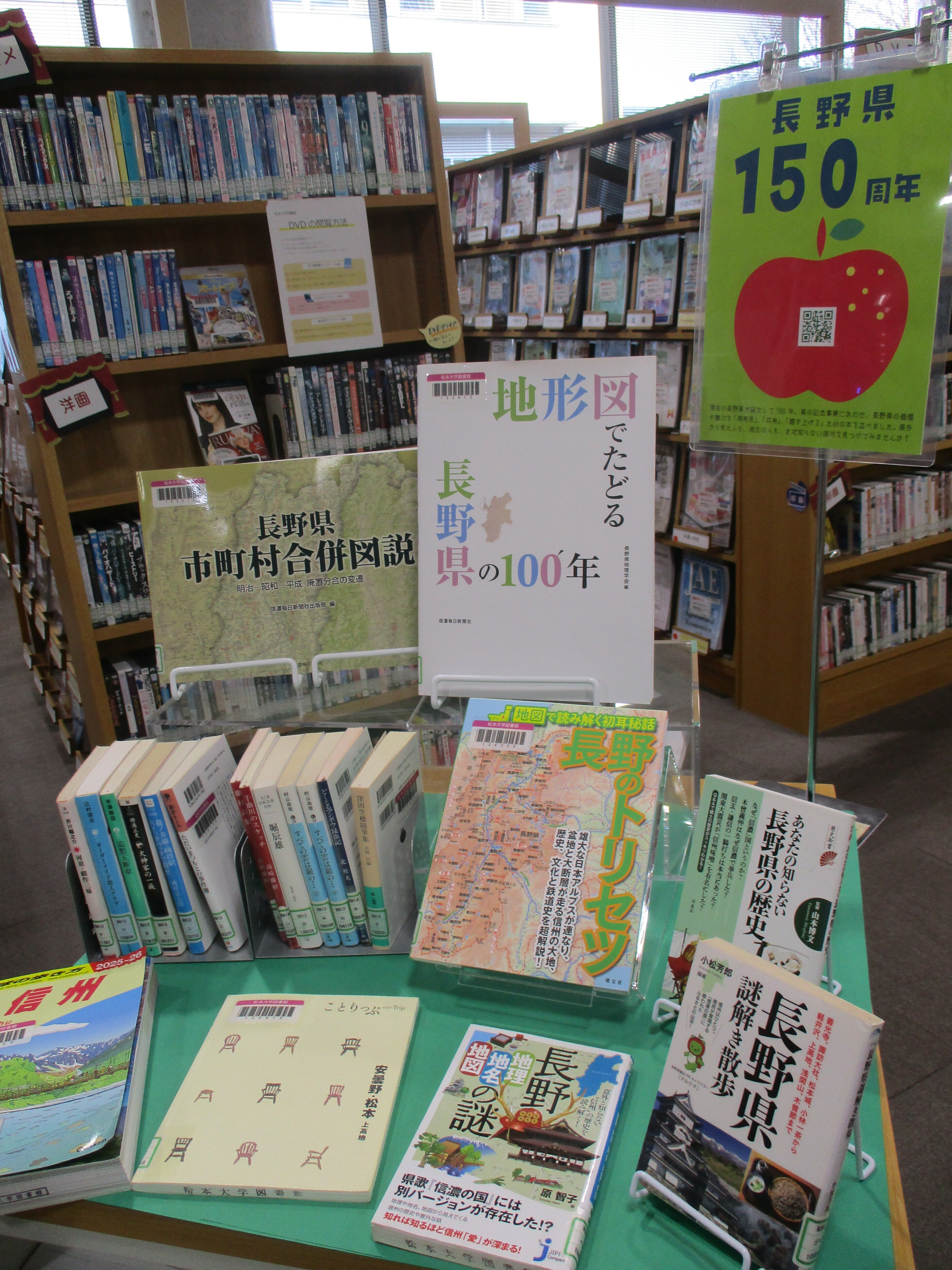 長野県150周年の記念事業にあわせて、長野の魅力を再発見できる本を並べました。