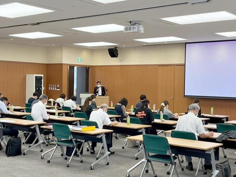 まず、等々力賢治副学長が、松本大学の運動と栄養による健康づくりの取り組みやタグフィットネスを紹介し、その後、参加者の皆さんに、実際に体力測定、ウォーキング、結果説明という一連の流れを体験していただきました。それによって、"出張型"特定保健指導というユニークな取り組みの特徴やメリットをご理解いただけたのではないかと判断しています。