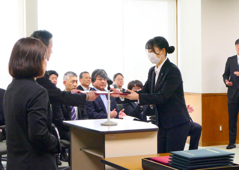 学部12名、短大10名の計22名に対して、清水一彦学長より、表彰状が授与されました。