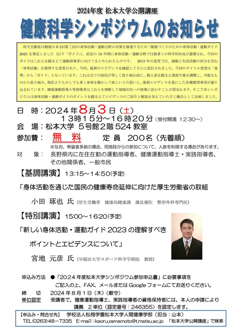 【ご案内】2024年度松本大学人間健康学部公開講座「健康科学シンポジウム」を開催