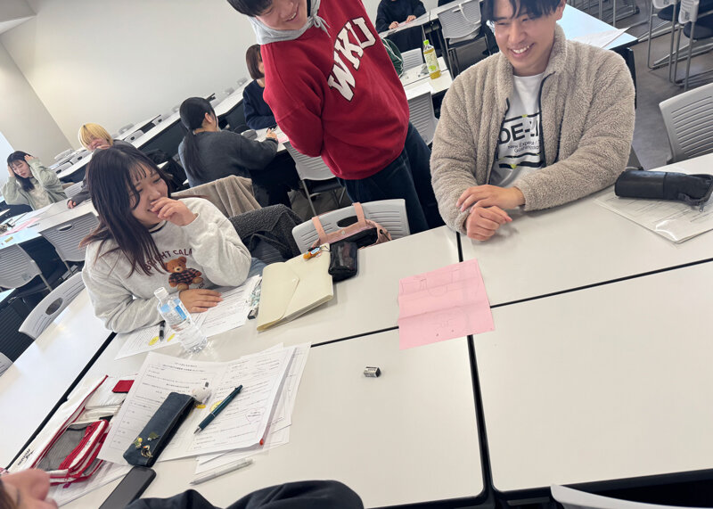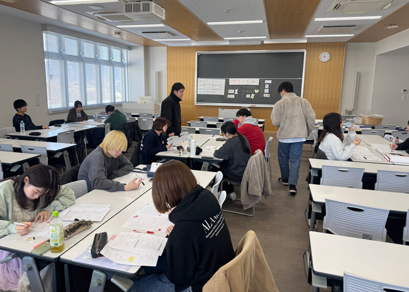 本日のメインプログラムは、先輩学生による模擬授業です。先輩たちの迫真の演技と洗練された進行に、ゼミ生一同はすっかり心を奪われた様子でした。「自分たちもこうなりたい」という憧れとともに、目前に迫った出前授業への意気込みもさらに高まっています。