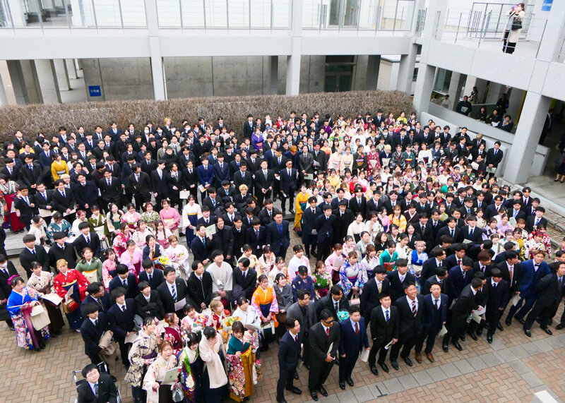 本学は、今年創立128年を迎えた学校法人松商学園の長い歴史と伝統を引き継ぎながらも、未来志向の大学として、改革と挑戦を続ける大学であります。これまでの先輩方が作り上げた「改革と挑戦のDNA」は、確実に卒業生の皆さんにも引き継がれていることと信じています。従来のシステムに疑問を持ち、思い込みを捨て、新たな価値すなわちイノベーションを創出しようとする思いも生まれたかも知れません。また、他者を尊重し、思いやりの心をもって、自律的にそして柔軟に考える力も身についたと思います。この間の皆さんの学びや活躍は、一人ひとりが「改革と挑戦」を続けてきた大きな成果であると私は考えています。