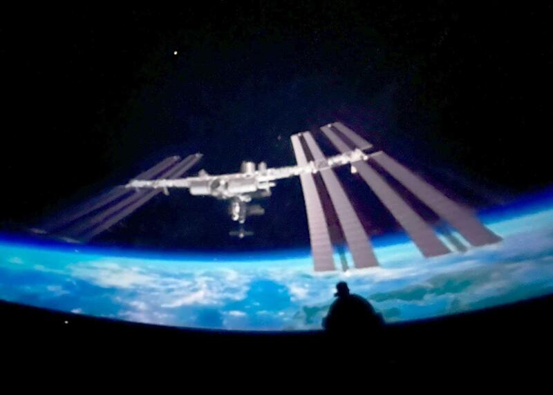 この日の投影や解説を担当していただいたのは館長のI先生。投影の冒頭から特別にスマホ撮影の時間を設けてくださったことで学生さんのボルテージは一気に高まりました。教育に関心のある若者たちに、今後の教材研究に役立つヒントを与えてくださったように思いました。その後、本題の投影がスタートしましたが、これは松本大学生向けに準備してくださったオリジナルの番組構成でした。ストーリーの詳細は割愛しますが、時間や空間を駆け巡りながら興味が深まっていく素敵な時間でした。投影操作と解説を同時に進められる館長I先生の姿は、学生にとっては目指すロールモデルとして強く印象付けられたことと思います。