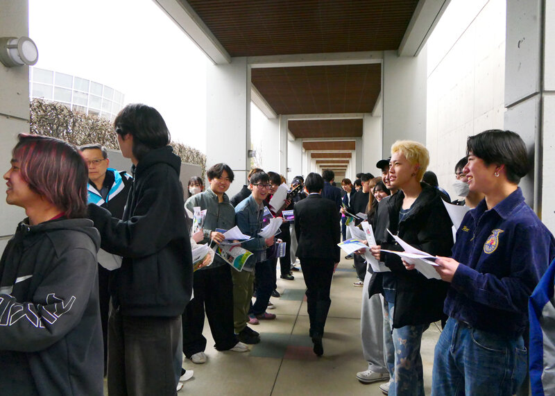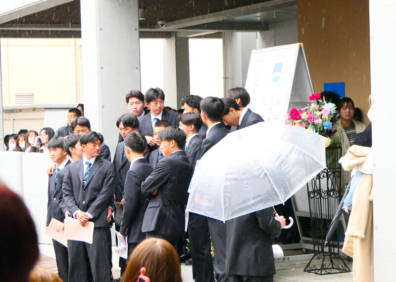 あいにくの天候ではありましたが、キャンパスには期待を膨らませた新入生の笑顔が溢れていました。入学生の皆さん、ご入学おめでとうございます!