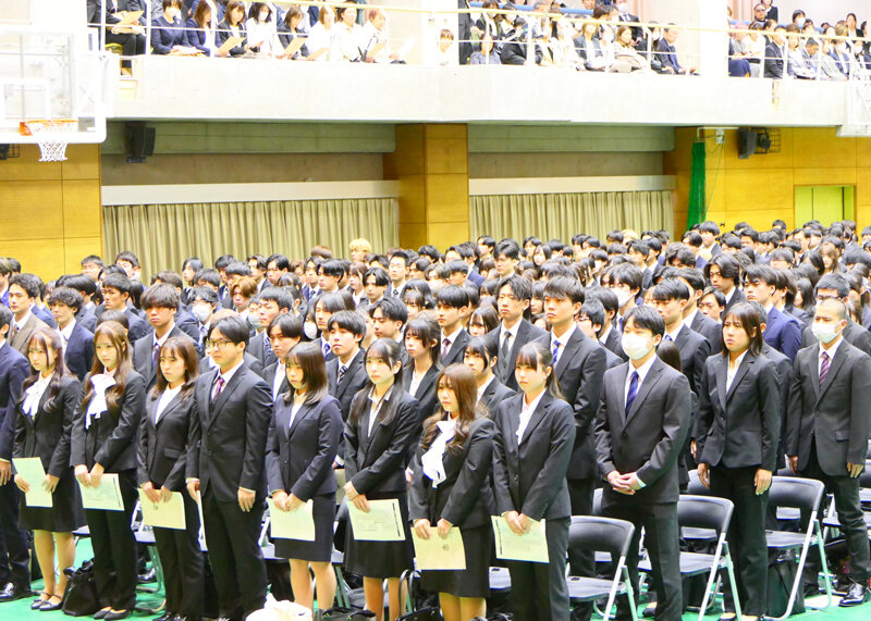 幸いに、本学では、そうした資質や能力を盛り込んだカリキュラムがしっかりと編成され、何よりもそのカリキュラムを教える優秀な教師陣やサポートシステムを備えていますので、ご安心下さい。きっと2年後、4年後の修了式には皆さんの資質・能力が開花され、無事に修了式を迎えることができると信じています。