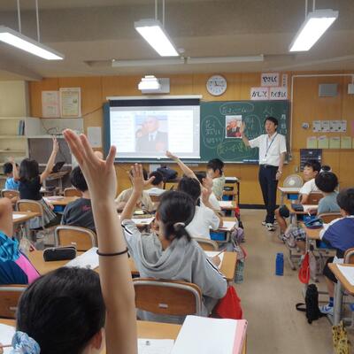 郷土資料(自作)を活用した道徳科の出前授業を旭町小学校の4、5、6年生で実施