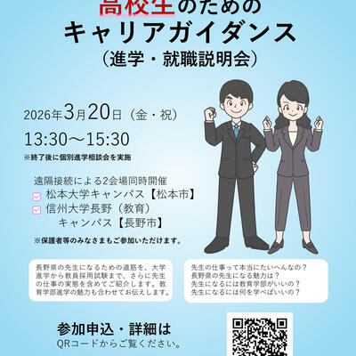 【ご案内】「長野県の先生を目指す高校生のためのキャリアガイダンス」を開催